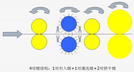 KH-BQ清洗機采用二級擠幹結構,可将闆料表面油膜控制在0.8~1.5克/平米這一水平,避免氣泡的産生。