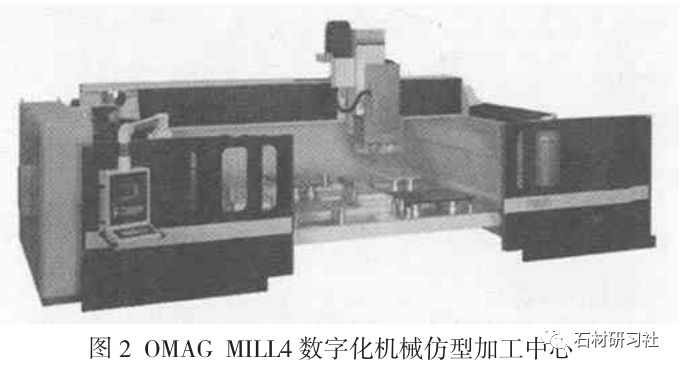 圖2爲意大利0MAG公 司MLL4型3到6軸的數字化機械仿型加工中心, 這套加工中心集鋸、雕刻、打磨、轉銑于一體。