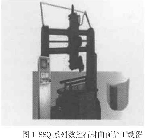 圖1爲山東大學石材工程技術研究中心研制的SSQ系列數控石材曲面加工設備。該設備采用了可靠的三坐标數控系統,刀具軸水平布置,鋸片或磨輪垂直切割。該設備可加工任意曲率、形狀的内、外曲面。