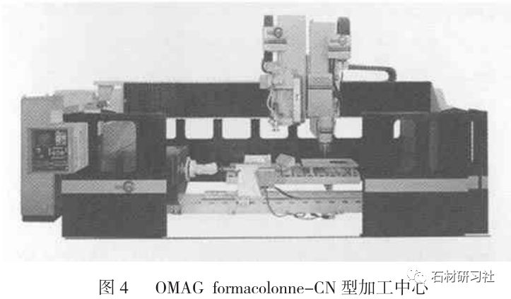 圖4 爲意大利OMAG公司設計的formacolonne--CN型加工中心,該加工中心采用4軸聯動數字控制加工技術, 同時配有兩個工作頭。